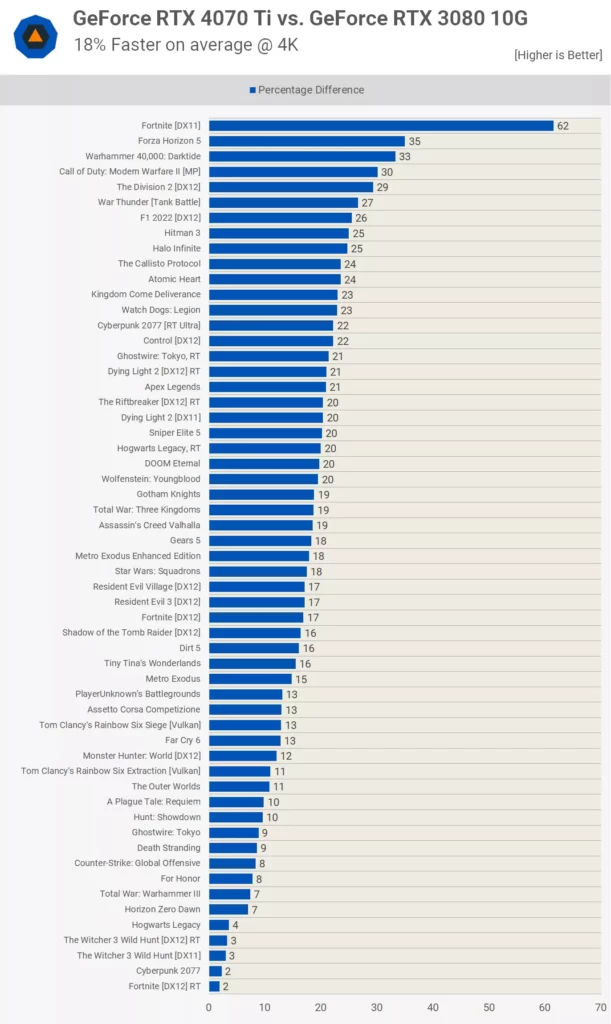 خلاصه عملکرد ۵۰ بازی در مقایسه RTX 4070 Ti و RTX 3080