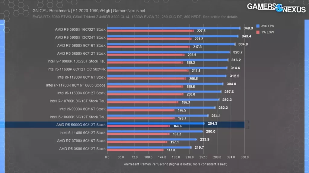 عملکرد پردازنده Ryzen 5 5600G در بازی F1 2020