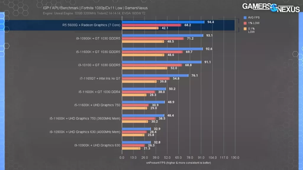 عملکرد گرافیک آنبرد Ryzen 5 5600G در بازی Fortnite