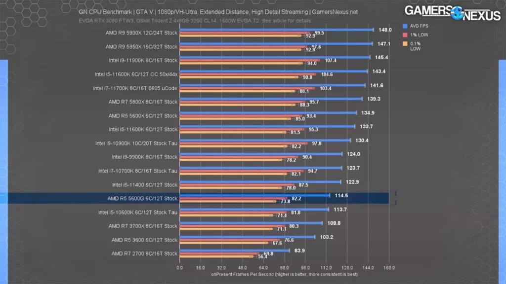 عملکرد پردازنده Ryzen 5 5600G در بازی GTA V
