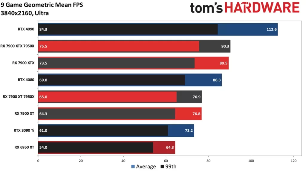 عملکرد کارت گرافیک RTX 4090 به طور میانگین