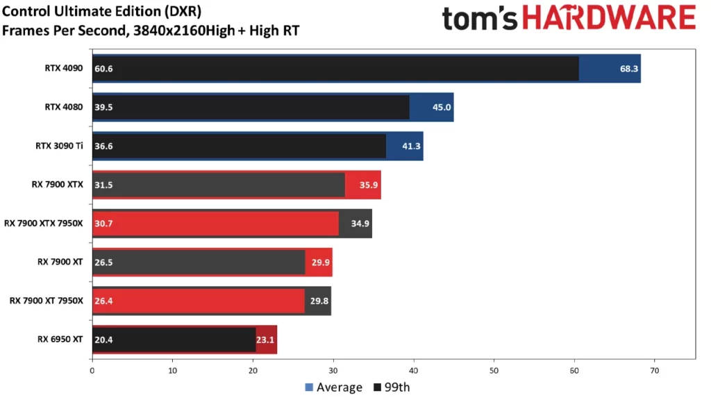 بنچمارک عملکرد کارت گرافیک RTX 4090 در بازی Control با ریتریسینگ