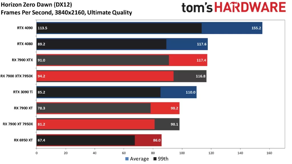آخرین عنوان تست رندر بازی خام برای کارت گرافیک RTX 4090، بازی Horizon Zero Dawnه. این بازی رو استودیو Nixxes پورت کرده، که مسئول پورت بازیهای دیگهای مثل Marvel’s Spiderman و Ratchet and Clank: Rift Apart هم بوده.