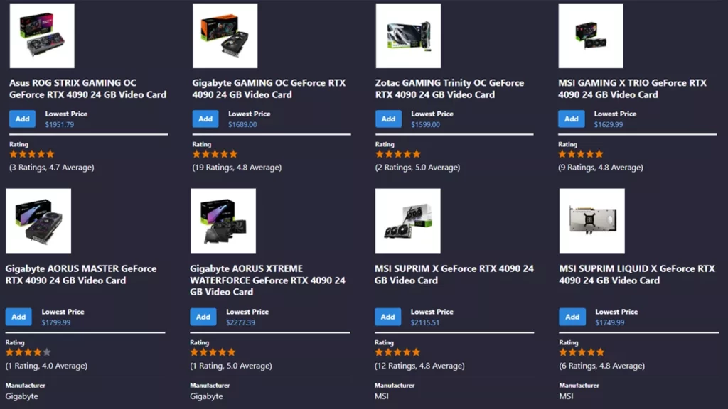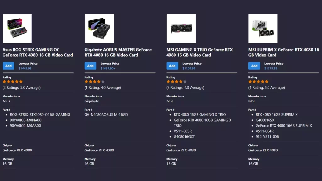 در تصویر بالا قیمت تعدادی از مدلهای مختلف RTX 4090 رو میبینید، که در ایران موجودن. تمام اونها قیمت کمتری از قیمت فروششون در ایران دارن، با گل سرسبدشون یعنی ASUS ROG STRIX RTX 4090 که ۱۹۵۰ دلار قیمت داره، یعنی ۹۷ میلیون و ۵۰۰ هزار تومان، اما در ایران با قیمت ۱۴۰-۱۵۰ میلیون تومان به فروش میرسه، یعنی حداقل ۴۳% گرونتر! تازه این قیمت خرده فروشیه، و واردکنندهها با خرید عمده، تخفیف زیادی هم میگیرن، اینکه بعضیاشون ارز وارداتی هم دارن به کنار :)). اما جالبترین نکته، تفاوت قیمت این کارت با RTX 4080ه.