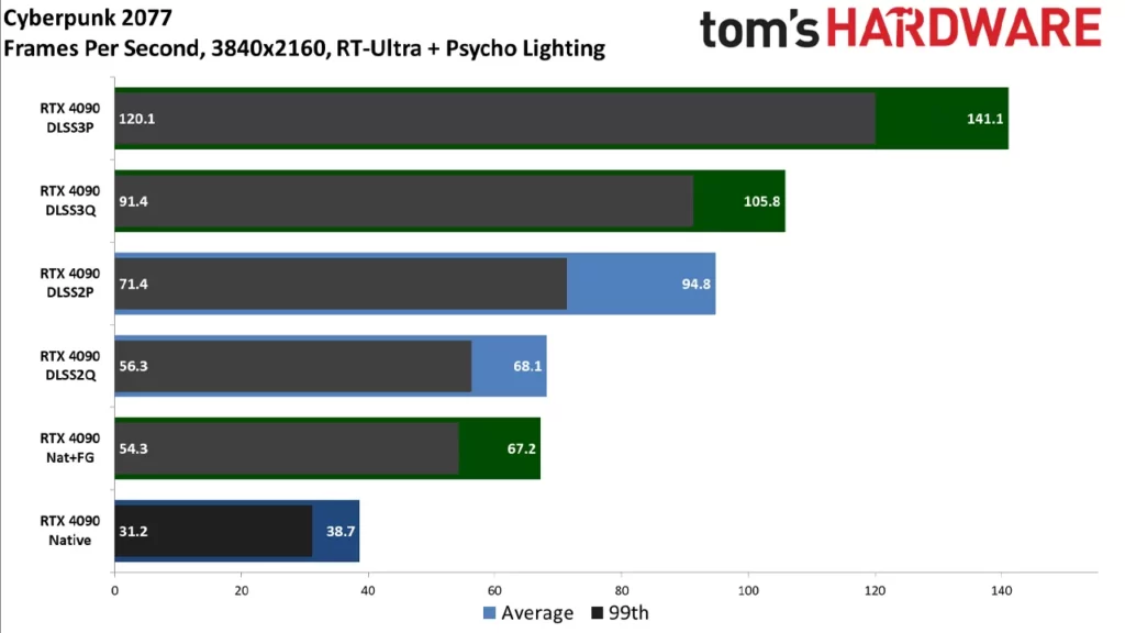 عملکرد کارت گرافیک RTX 4090 با استفاده از ریتریسینگ به طور میانگین