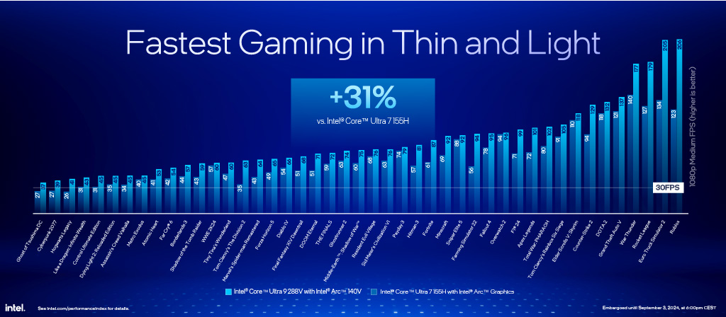 اینتل بنچمارکهای عملکرد پردازندههای سری Core Ultra 200V از خانوادهی Lunar Lake رو قبل از نمایشگاه IFA 2024 در برلین معرفی کرد. اینتل برای معرفی این پردازندهها از عنوان «بهینگی تاریخی x86» استفاده کرد که سریعترین هستههای CPU لپ تاپی و نسبت به رقبا دارن تا ۳۰ درصد عملکرد بهتری تو بازیها ارائه میدن.