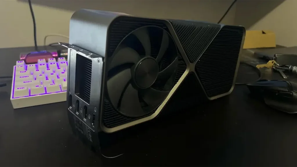 با این حال، تقسیم PCB به این معنی بود که انویدیا نمیتونست به استانداردهای صنعتی پایبند بمونه، چرا که کانکتورهای نمایشگر مثل DP 2.1 برای PCB تک لایه طراحی شدن، که یه مفهوم رایج تو بازاره. برای رفع این مشکل، انویدیا از فیبرهای شیشهای در زیرلایههاش استفاده کرد تا شکاف ایجاد شده به دلیل تقسیم PCB رو پر کنه. جالبه که یه مهر و موم ضد هوا دور چیپ GPU وجود داره، که رابط فلز مایع بسیار قدرتمند انویدیا برای دفع حرارت رو هم تسهیل میکنه، بنابراین چیزهای زیادی برای متخصصین کالبدشکافی (teardown) وجود داره که باید بهشون توجه کنن.